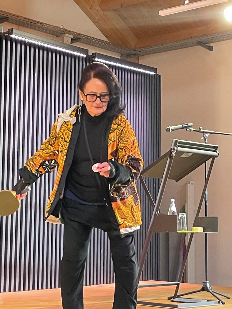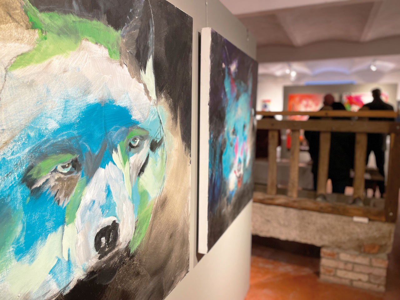 Sie ist, was sie malt, ein echt verrücktes Huhn – charaktervoll, ausdrucksstark, ungehörig und rebellisch. Ein Tier findet sich neben anderen tierischen Motiven in ihrem Werk immer wieder: das Huhn. Daher wird die Ingolstädter Künstlerin Elisabeth E. A. Jung auch liebevoll die Hühner-Lizzy genannt. Was vielleicht ein wenig verspielt anmutet, hat Tiefgang und Seele. Sie klagt den oft brutalen und rücksichtslosen Umgang des Menschen mit dem Tier an und kommt zu dem Schluss: „Die Natur ist stärker als der Mensch. Ich empfehle Ihnen, beim Rundgang durch die Ausstellung den Motiven in die Augen zu schauen. Sie werden überrascht sein, dass Sie eine Stimmung des Tieres erkennen werden.“ Was sie ebenfalls bewegt, ist die Rückkehr des Wolfes, zunächst bejubelt, jetzt zum Abschuss freigegeben! Diesbezüglich findet sich in der Ausstellung auch der Videofilm „Den Spieß umgedreht“, entstanden im Gerolfinger Eichenwald.